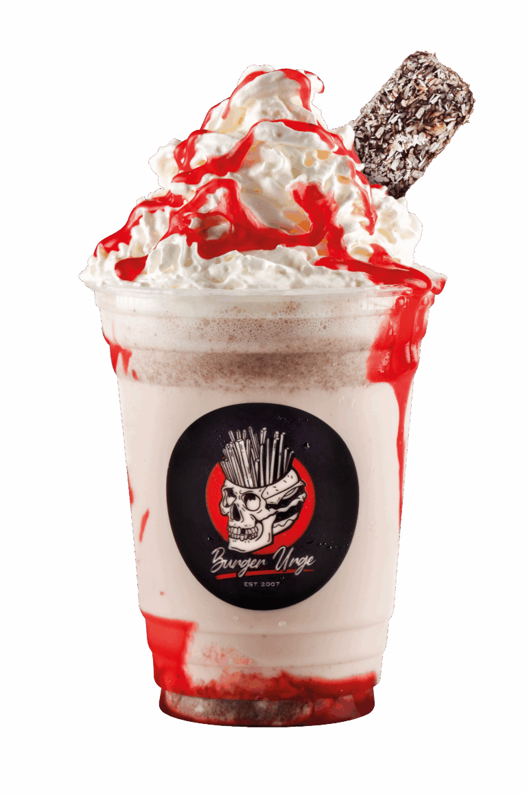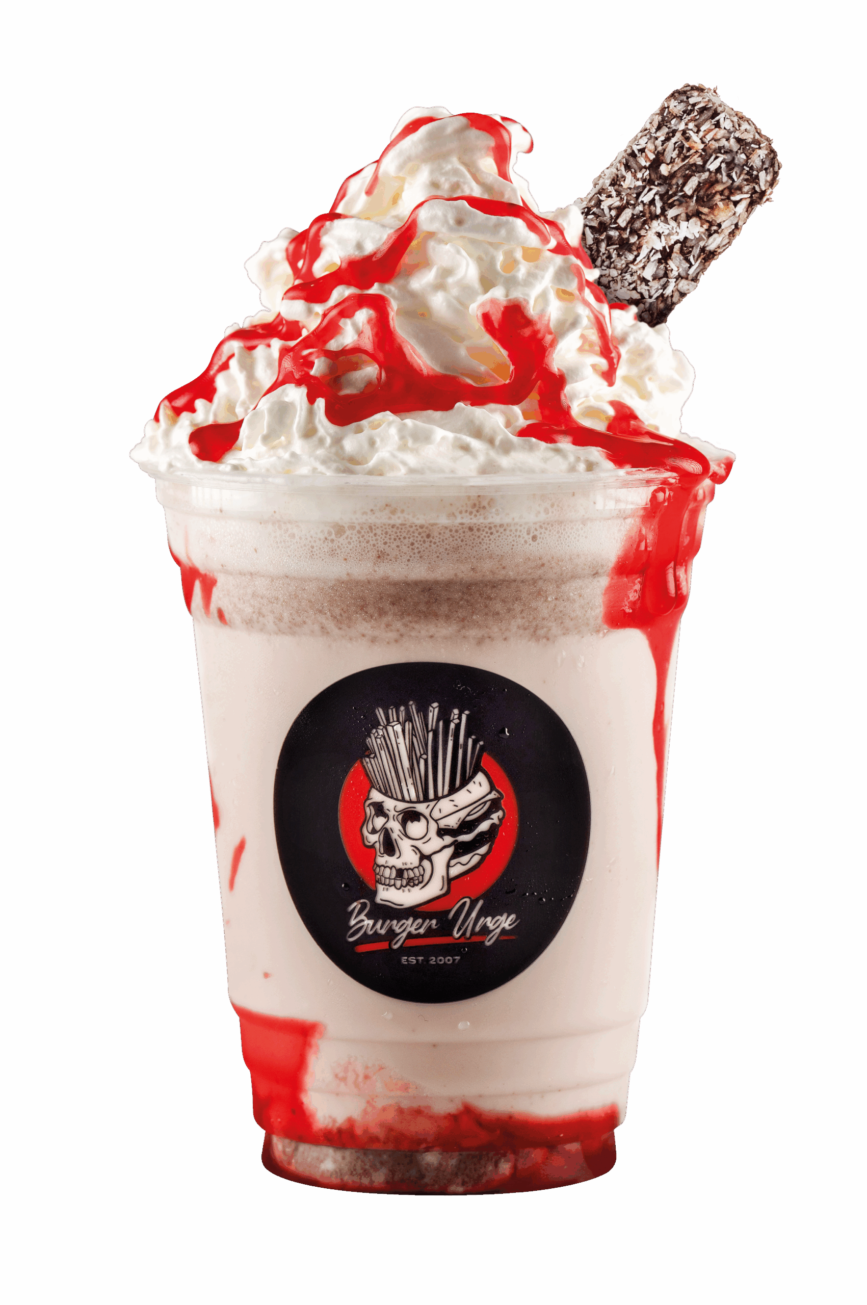 Her Lammo Shake is a local fave with a decadent blend of creamy vanilla ice cream and coconut (Bounty bar) served with a swirl of strawberry sauce, cream and a spongy lamington topper.